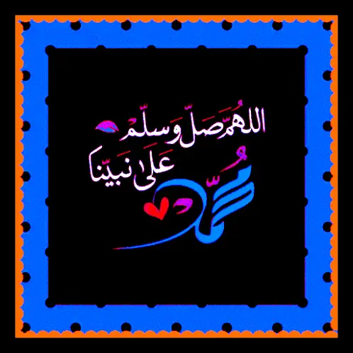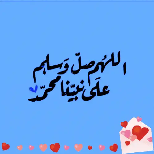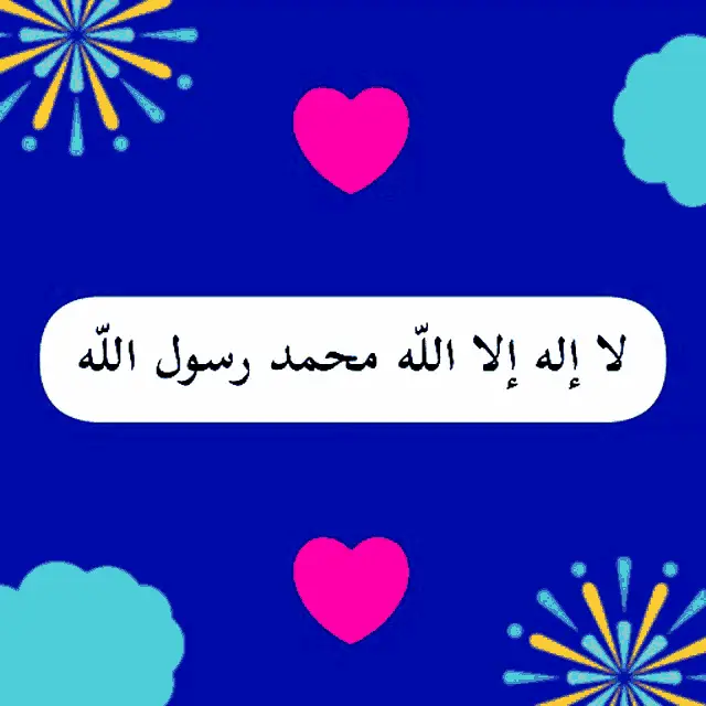 Arabic Takbir (Allah is the Greatest) with animated red hearts on a blue background.