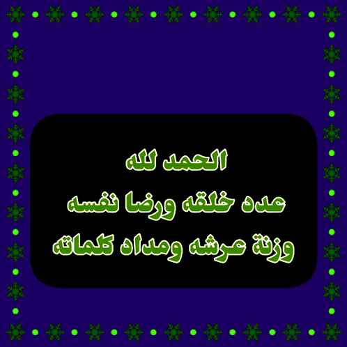 Arabic text 'Praise be to Allah as many as His creation...' with animated green hearts in a speech bubble.
