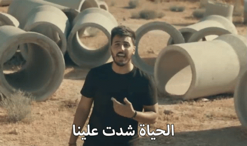 Wessam Q performs amidst concrete pipes in a desert landscape, reflecting on life's challenges.