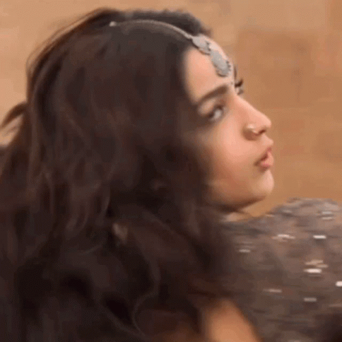 Alia Bhatt in a close-up shot, wearing traditional Indian attire, maang tikka, and bindi from Kalank.