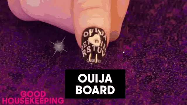 Alice Lockhart showcases her glam goth makeup with purple eyeshadow and lipstick, featuring long, intricate nails.