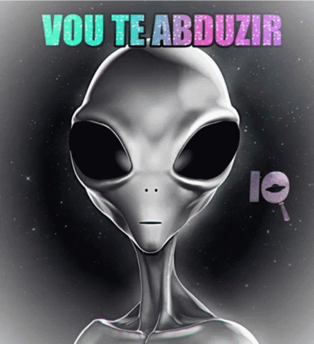 A grey alien with large black eyes and the Portuguese text 'VOU TE ABDUZIR' (I WILL ABDUCT YOU).