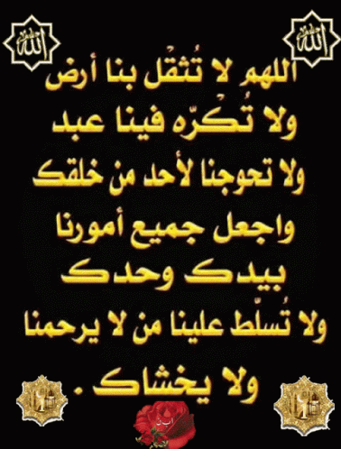 A powerful Arabic prayer asking Allah for mercy and protection, featuring a red rose.