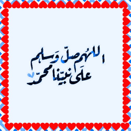 Beautiful Arabic calligraphy: 'O Allah, send prayers and peace upon our Prophet Muhammad', framed with hearts.