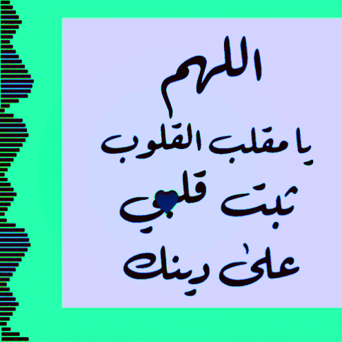 A heartfelt Islamic prayer: 'Oh Allah, O Turner of hearts, keep my heart steadfast on Your religion,' with animated hearts.