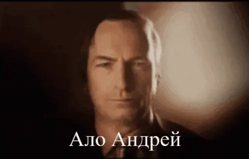 A close-up of a man's face with the Russian text "Ало Андрей" (Hello Andrey) displayed below him.