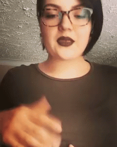 Allyson A7 demonstrates sign language, wearing glasses and a dark shirt with a star tattoo.