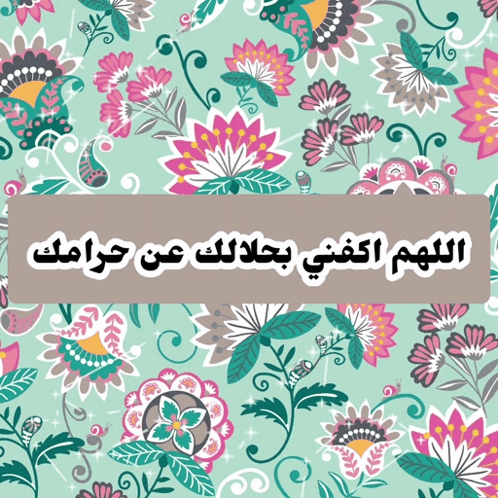 A beautiful floral background featuring an Arabic prayer for guidance, piety, chastity, and lawful provision.