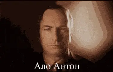A close-up of a man's face with the text 'Alo Anton' displayed, featuring a sepia tone and subtle movements.
