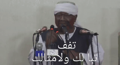 A man identified as Al-Shartah Zabalaji delivers a powerful speech, with the overlaid text "Woe to you and your likes."