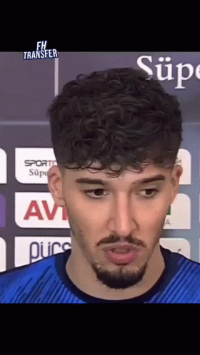Altay Bayındır, a man with curly hair and a beard, speaks in a blue striped shirt, likely during an interview.