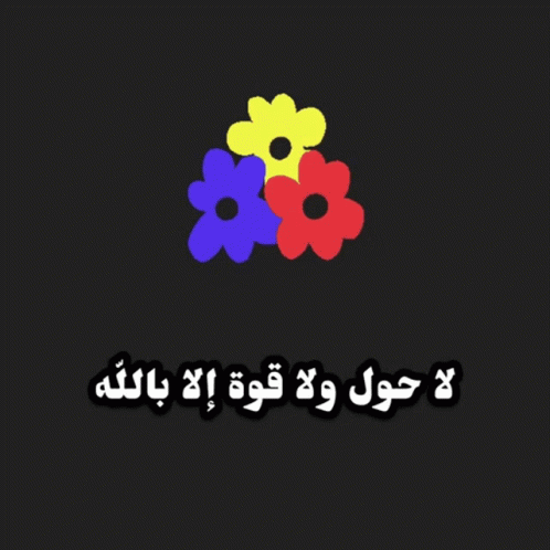 Animated display of the Islamic phrase 'La hawla wa la quwwata illa billah' with colorful flowers.