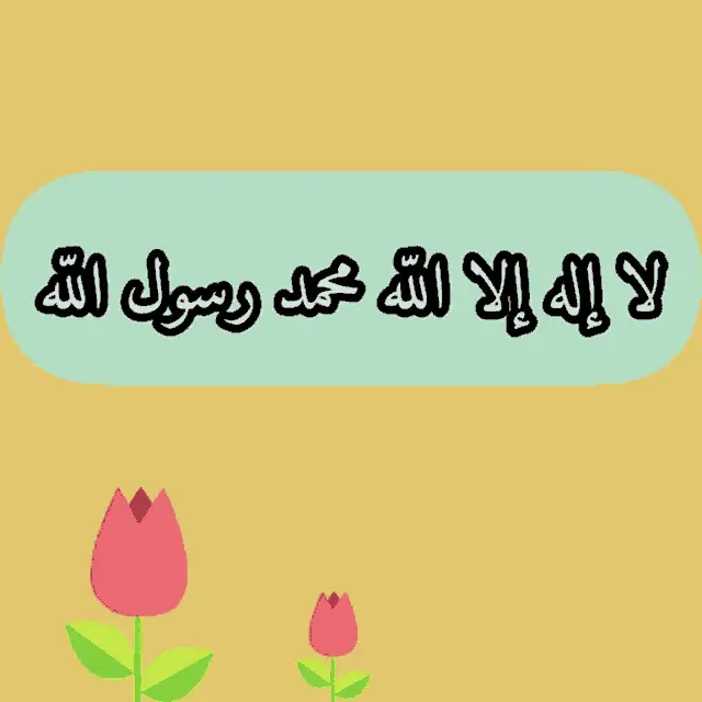 Arabic phrase 'La hawla wa la quwwata illa billah' (Tasbih Hawqala) displayed above vibrant red tulips.