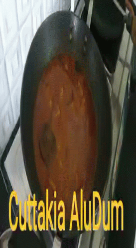 Delicious Cuttakia Alu Dum and Dahi Bara curry simmering in a pan on the stove.