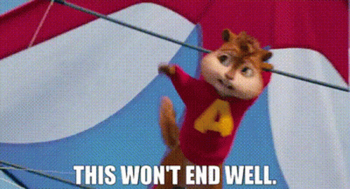 Alvin from Alvin and the Chipmunks hangs precariously from a kite, with the caption 'This won't end well.'