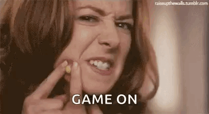Alyson Hannigan intensely squeezing a pimple on her face, declaring 'Game On'.