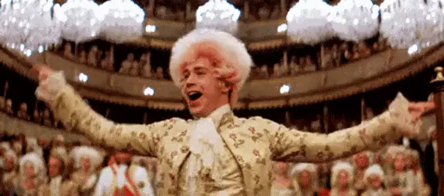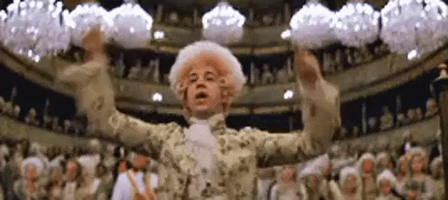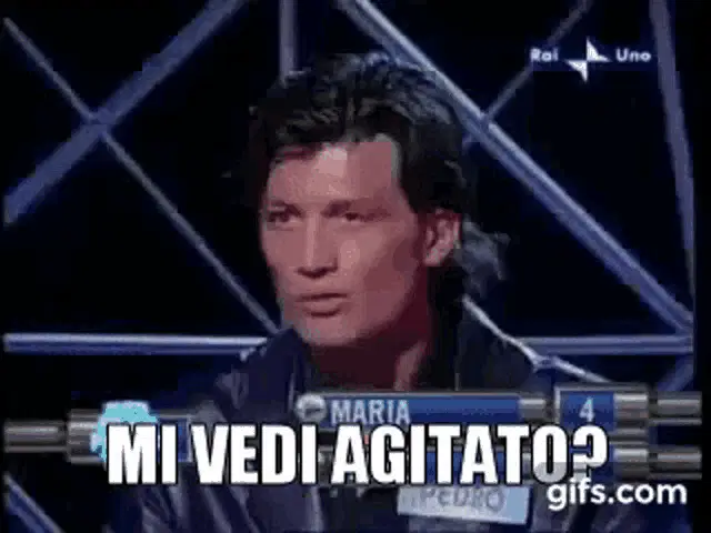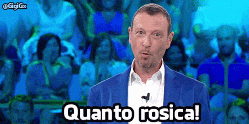 Italian TV host Amadeus exclaims 'Quanto rosica!' in front of a live audience, expressing annoyance.