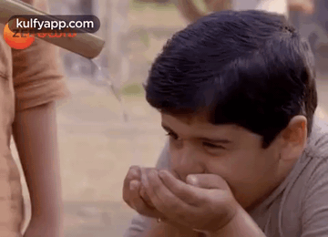 A young boy drinks water from a makeshift spout, featured in the Ambedkar Title Song.