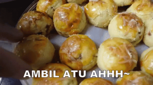 A hand reaches for a delicious Nastar cake, with the playful caption "Ambil Atu Ahhh~".
