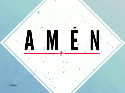 Animated graphic displaying the word 'Amén' with a red underline and diamond detail, created by Ishbaj.