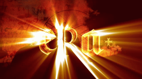 Golden, glowing letters 'e R a' (or 'e R m') emerge with intense light beams, reminiscent of Ameno Les Visiteurs.