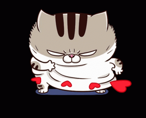 Ami Fat Cat Fgcat, a cute animated cat, dances playfully with red hearts around it.
