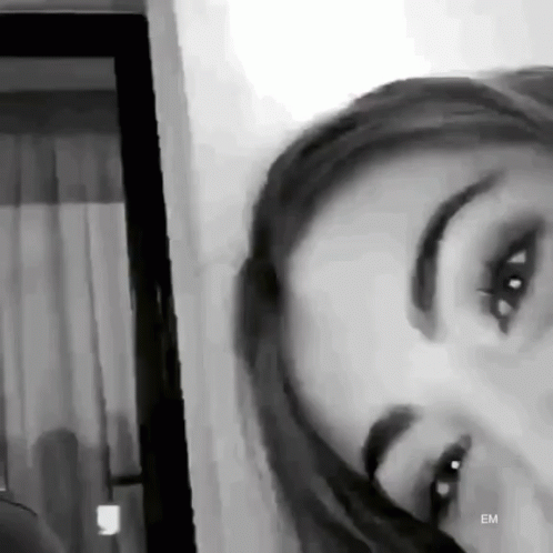 Emma Muscat in a black and white close-up selfie, showcasing her eyes and forehead from Amici17.