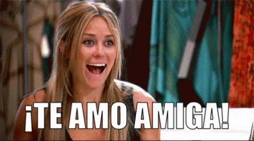 Lauren Conrad and a friend express their affection, with one exclaiming "¡Te amo amiga!" (I love you, friend!).