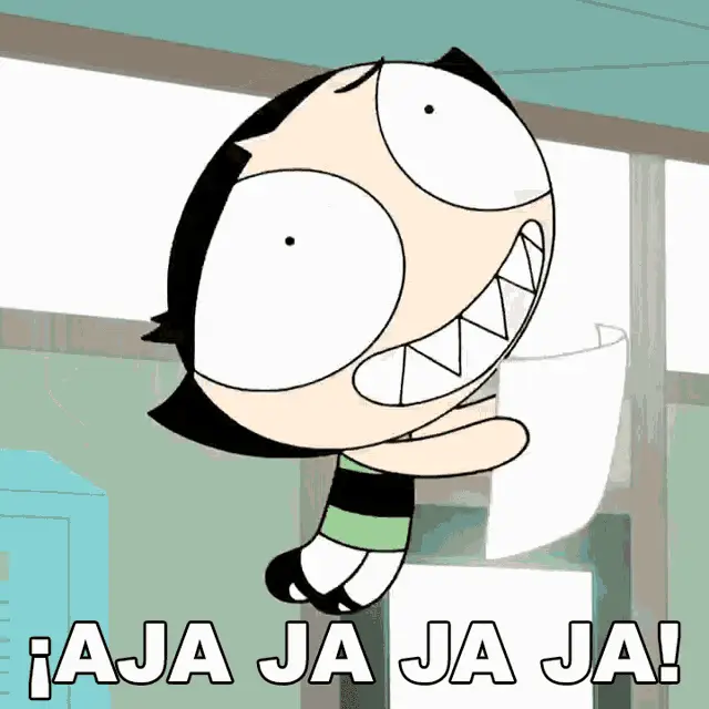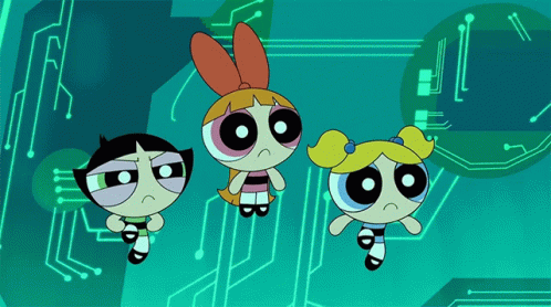 The Powerpuff Girls, including Bellota (Buttercup), looking upset with the caption 'Friend, you are damaged'.