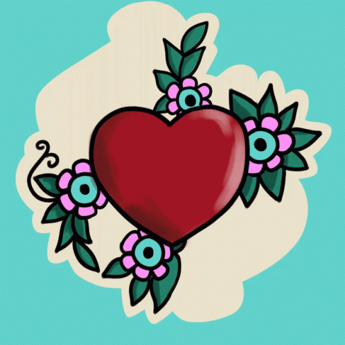 Animated tattoo-style drawing of a red heart with a banner that reads 'Amo a mi abuelita y voto' (I love my grandma and I vote), surrounded by flowers.