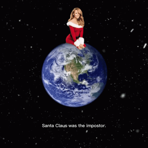 Mariah Carey sits atop the Earth as Santa Claus is revealed as the impostor in this festive Among Us meme.