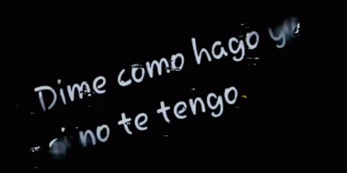 Spanish text 'Dime como hago yo si no te tengo' (Tell me how I do if I don't have you) on a black background.