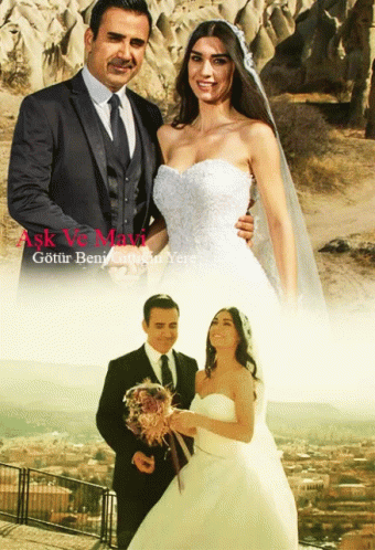 Emrah Erdoğan and İpek pose in wedding attire, celebrating their union in a beautiful outdoor setting.