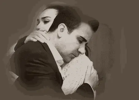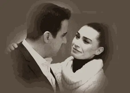 Emrah Erdogan and Burcu Kiratli share an emotional moment, holding hands during a serious conversation.