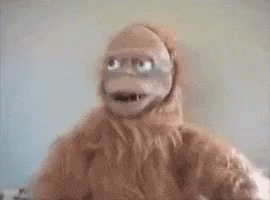 Amy the Orangutan gives an intense, serious look with moving eyes and mouth.