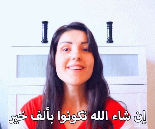 A woman in a red shirt smiles and greets viewers, saying 'Hope you are all well, God willing.'