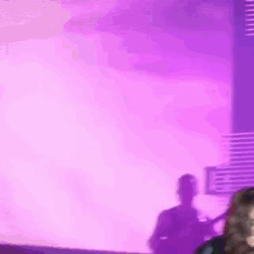 Anahi Venezuela performs on stage, smiling and holding a Colombian flag under vibrant purple lights.