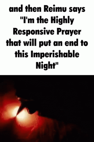 Reimu's dramatic quote about being the Highly Responsive Prayer to end the Imperishable Night, paired with a reaction meme featuring Gunna.