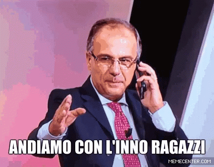 Carlo Pellegatti (Suma) enthusiastically calls for the anthem, 'Andiamo Con L'Inno Ragazzi'.