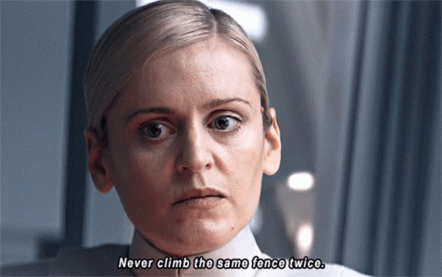Dedra Meero (Denise Gough) from Andor delivers the line 'Never climb the same fence twice' with a stern expression.