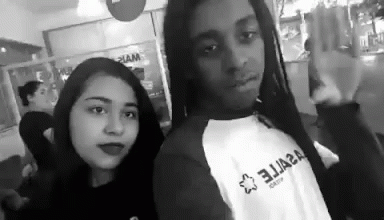 Andriix and Cala Boca pose for the camera, making hand gestures in a black and white video.