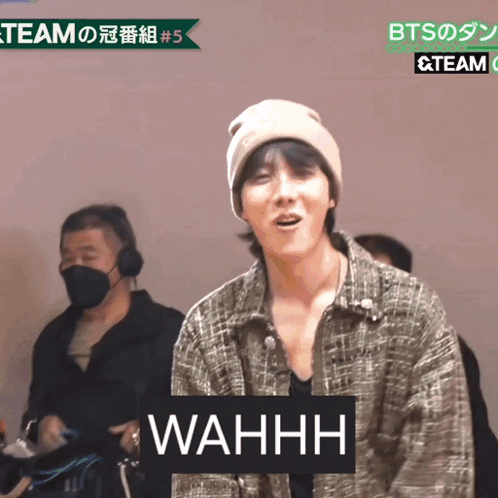 BTS's J-Hope reacts with an enthusiastic 'WAHHH' during &TEAM's Crown Program #5 dance practice.