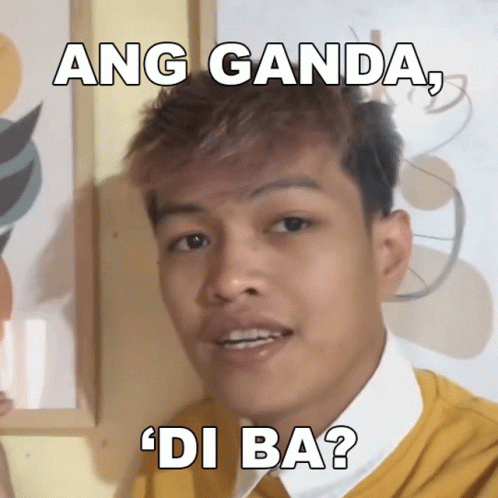 Jhon Mark Perez asks 'Ang Ganda, 'Di Ba?' while wearing a yellow collared shirt.