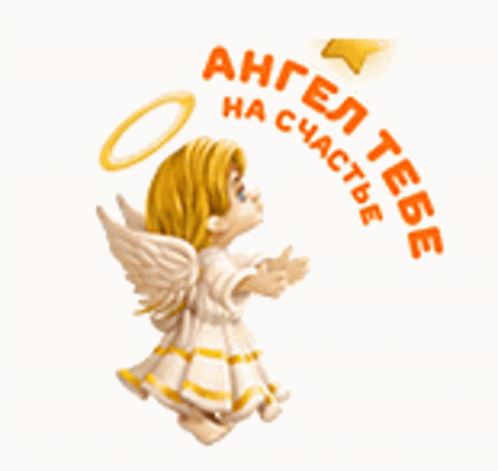 A cute cartoon angel with a halo, bringing a star and a message of happiness.