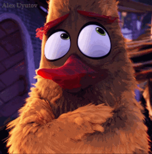 A close-up of a fluffy brown Angry Birds character with large eyes and a red beak, by Alex Uyutov.