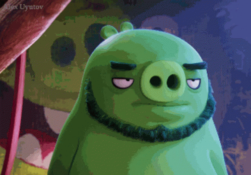 Green Angry Birds pig by Uyutov looking sleepy and about to fall asleep with a dark, beard-like collar.