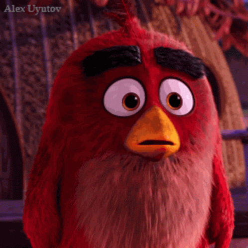 Red from Angry Birds, animated by Alex Uyutov, displays a range of emotions from sadness to determination.