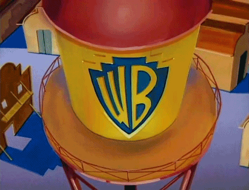 The iconic Warner Bros. water tower, as seen in Animaniacs, with the classic WB logo.