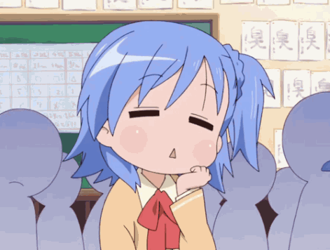 Anime character Miyakawa with blue hair looking bored and resting her chin on her hand.