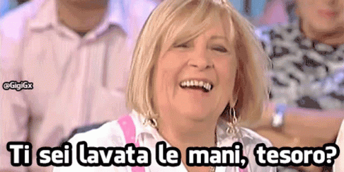 Anna Moroni from La Prova Del Cuoco laughing and asking 'Did you wash your hands, honey?'